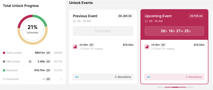 On the last day of February, Optimism will release 24.16 million OP tokens into circulation for core contributors and investors. As of writing, these tokens are worth $76.58 million.