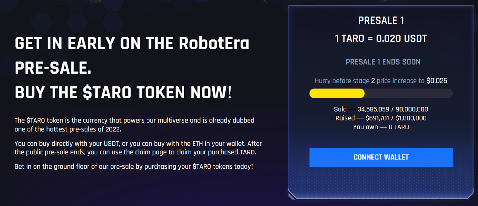- RobotEra (TARO) – Metaverse P2E Project in First-round Presale