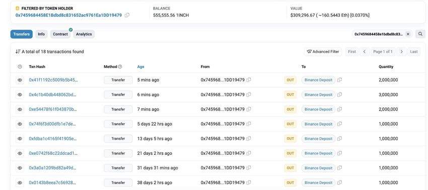 SponsoredThe chart below shows how a 1INCH whale investor moved 7 million tokens into Binance on Monday, July 17.