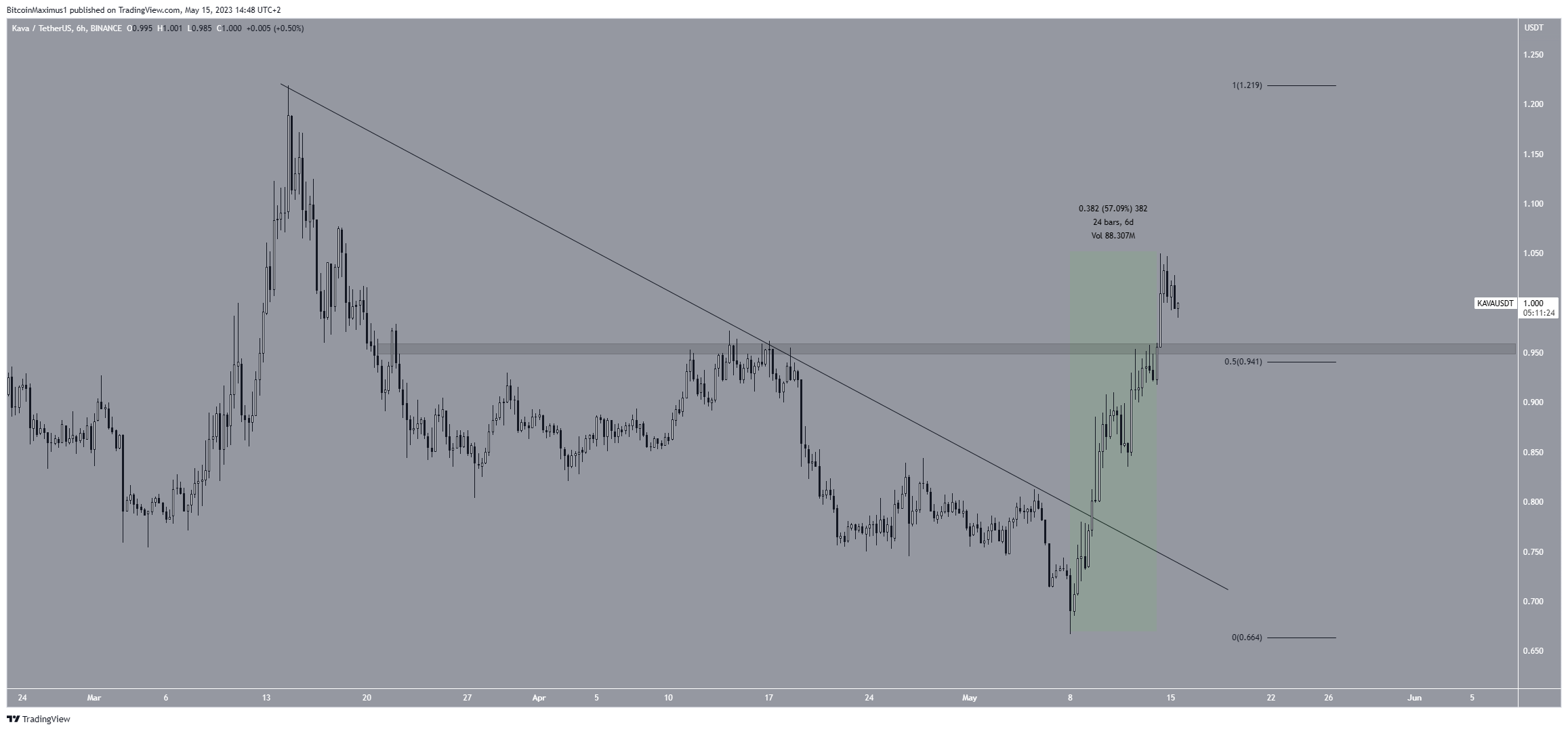 The KAVA price has increased by 57% over the past six days. The movement resulted in a breakout from a descending resistance line that had been in place since the beginning of March.