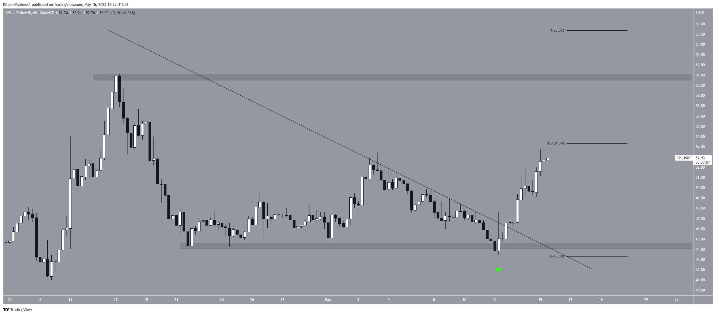 The RPL token price has increased sharply since it was trading at a low of $43.45 on May 12. The same day, it broke out from a descending resistance line that had been in place for nearly a month.