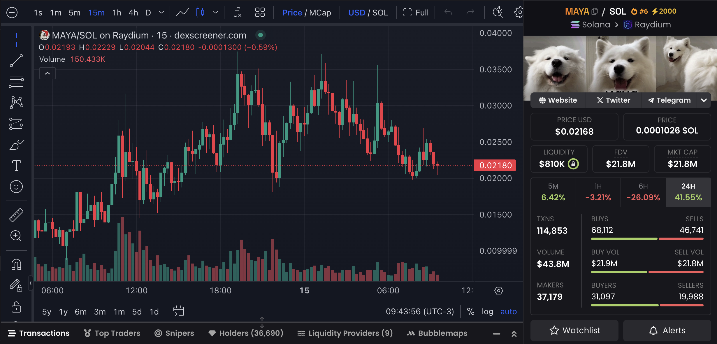 MAYA made its debut on Pumpfun almost four days ago before quickly graduating to Raydium. The token has gained significant traction, currently holding a market cap of $21.4 million. In just a few days, MAYA has already attracted over 36,000 holders.