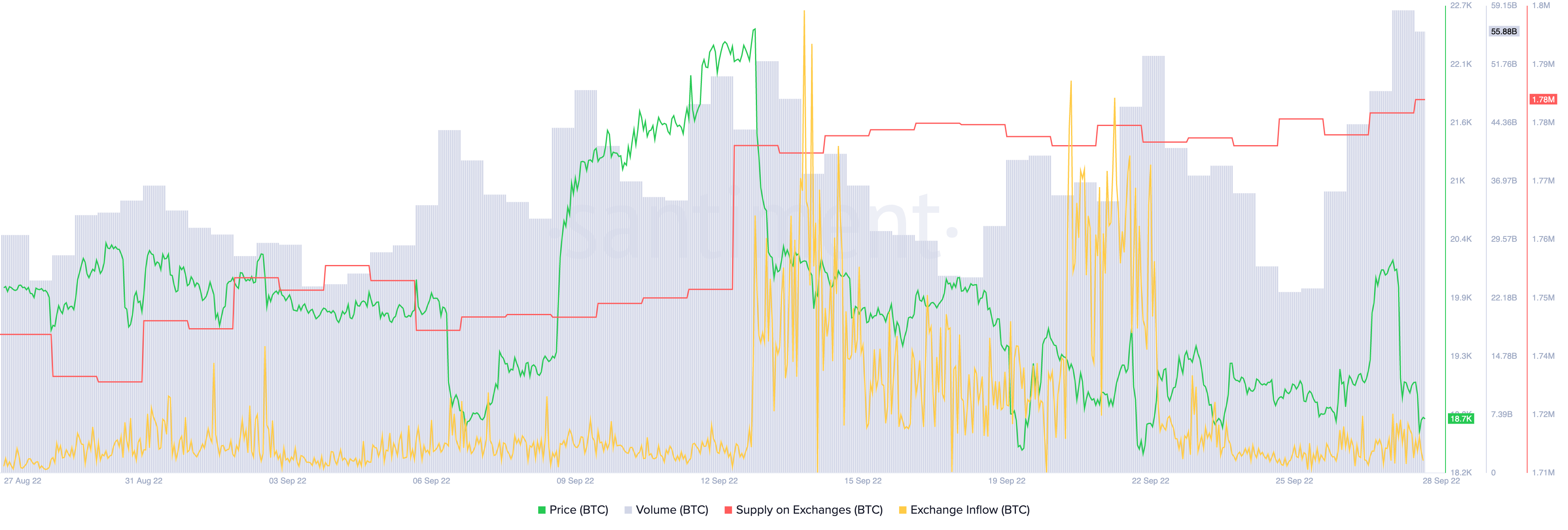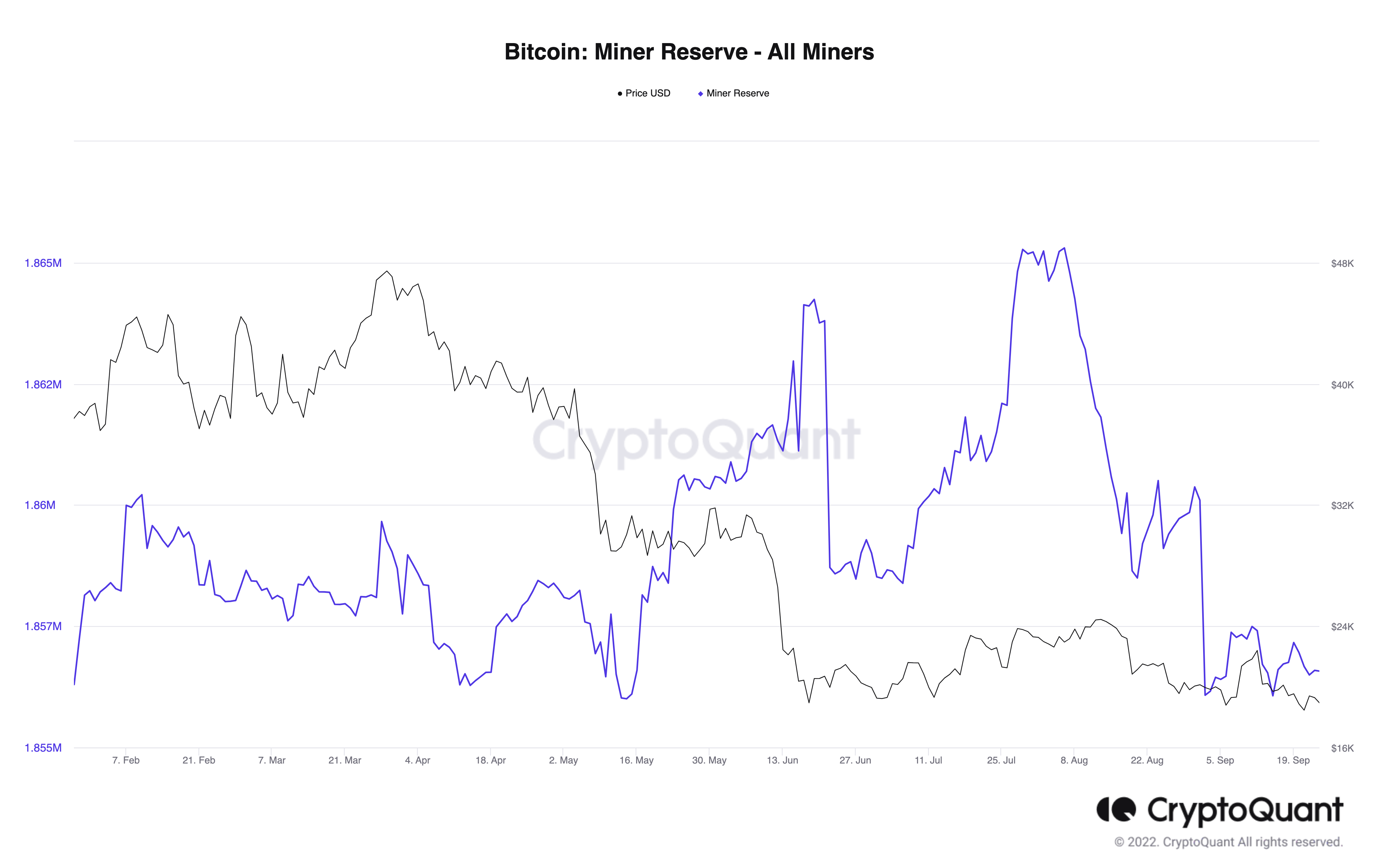 In addition, Miners’ Reserves have remained flat at around 1.86 million throughout September. Miners Reserves noted a sharp decline in August and have failed to recover, barring the occasional upticks.