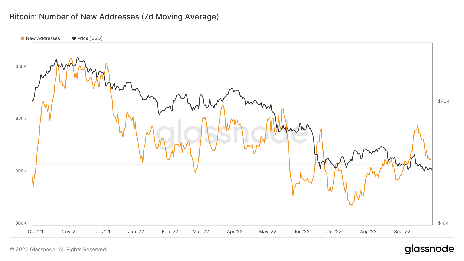 Bitcoin’s rangebound price momentum and bulls’ struggle to keep BTC price above the $20,000 mark have left retailers conscious of their moves. Generally, high trade volumes coupled with new addresses joining the network are indicative of higher retail interest.