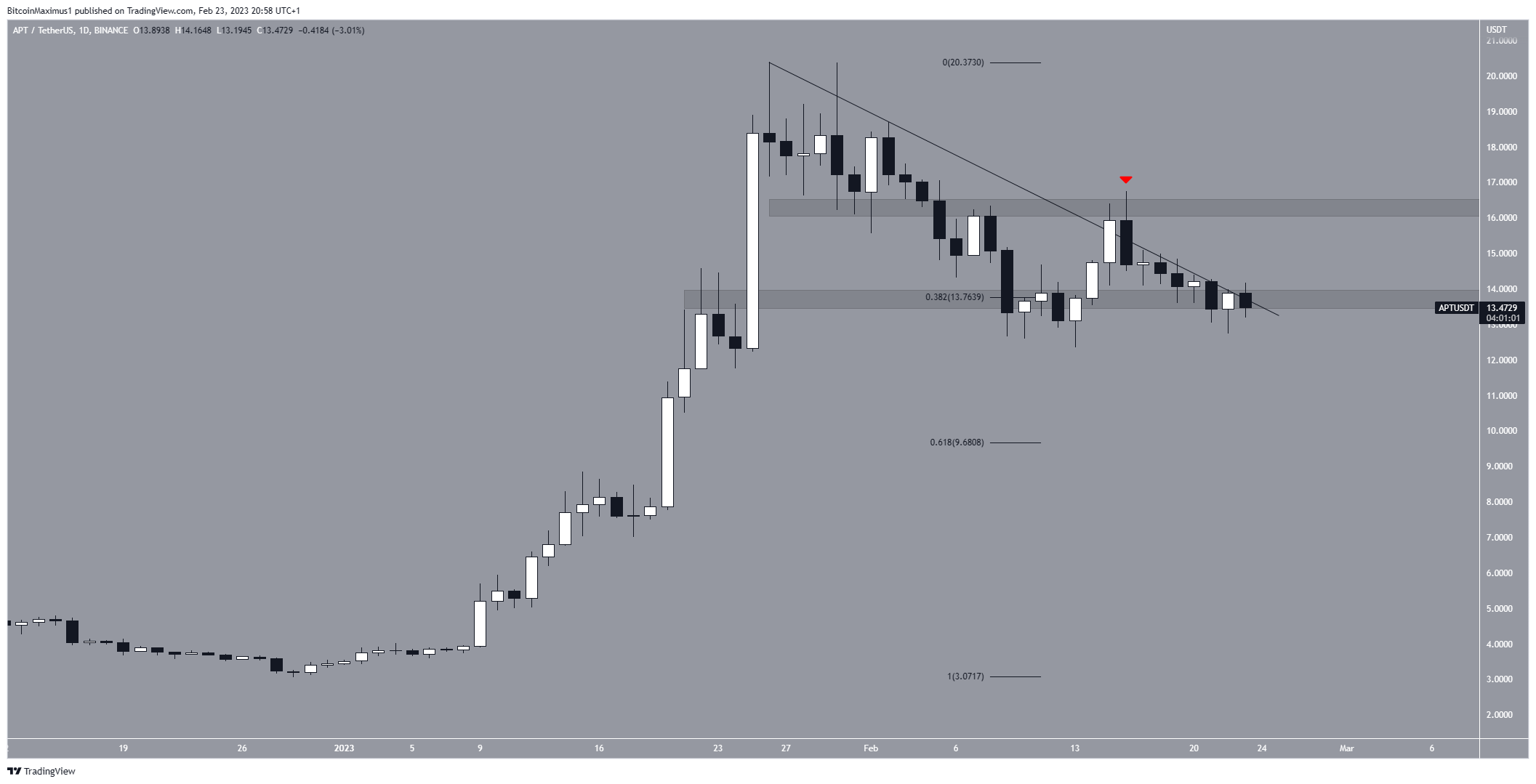 When combined with the $13.76 support area, the price action creates a descending triangle, which is considered a bearish pattern. As a result, a breakdown from it would be the most likely future price forecast. In that case, the APT price could fall to $9.68.Â