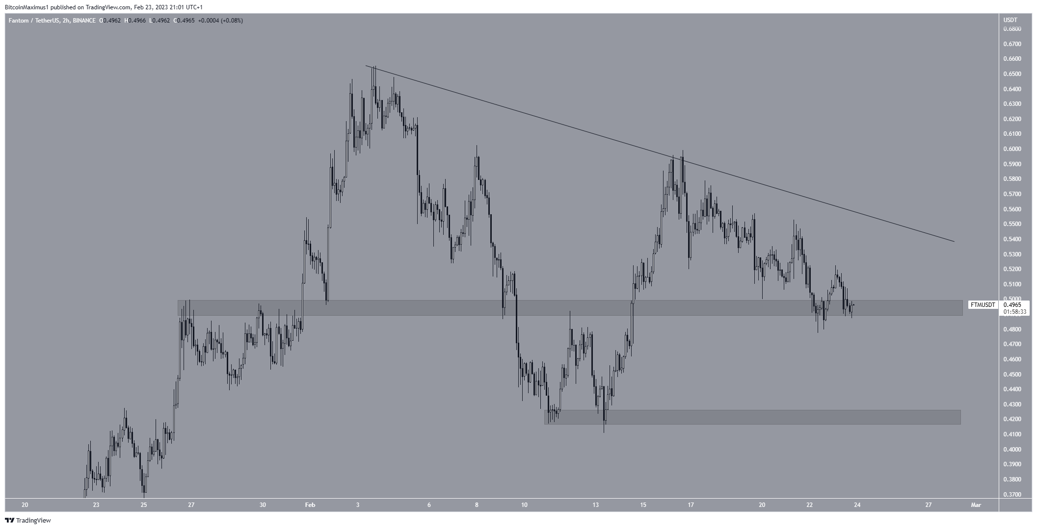 The FTM price is currently trading inside the $0.495 support area. Whether it bounces or breaks down could determine the future trend’s direction. A bounce could lead to a retest of the resistance line, while a breakdown could lead to a fall toward $0.420.