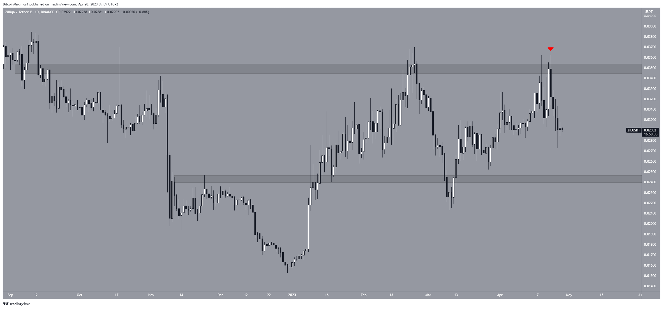 The ZIL price has decreased since the $0.035 resistance area rejected it on April 27. The area has been in place since September 2022. Therefore, it is a crucial resistance level.