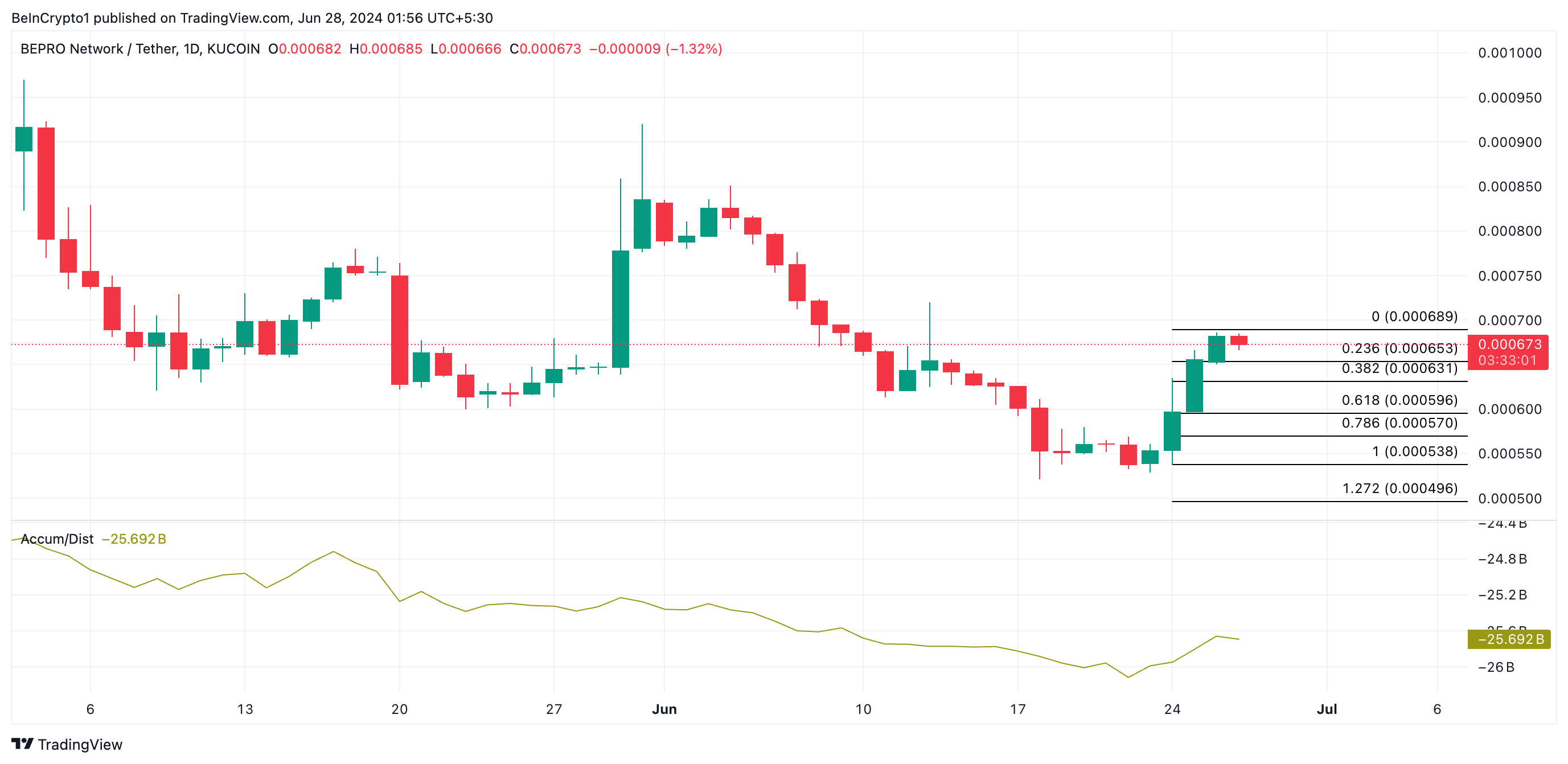 Since then, its price has rebounded. The altcoin currently trades at $0.00067. BEPROâs value has surged by 20% in the last seven days.