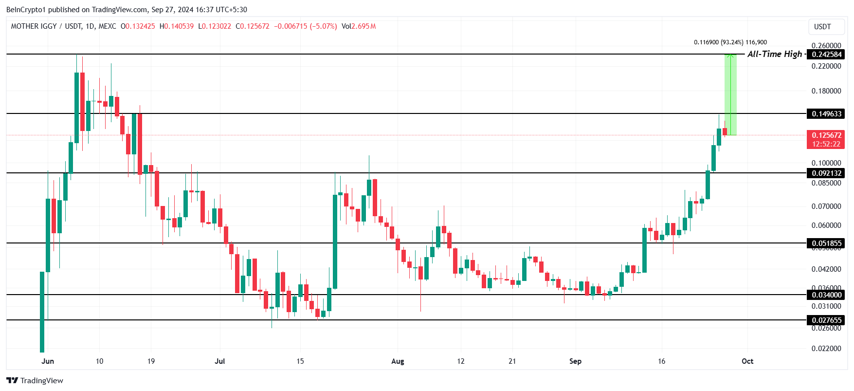 MOTHER is among those few coins that have a better shot at forming a new all-time high than sustaining the momentum. Historically, this meme coin has noted sharp rises and equally sharper corrections.