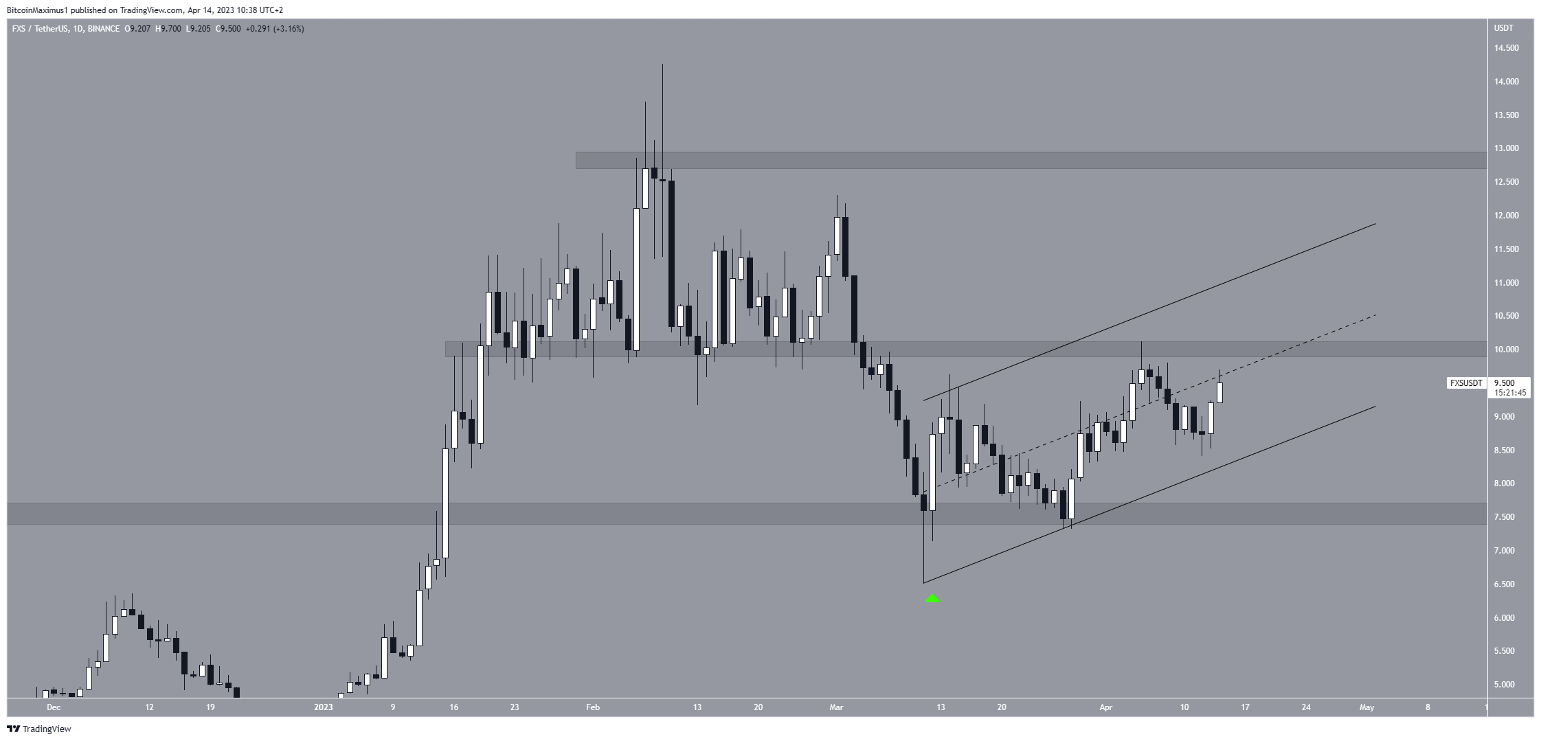 Similarly to QNT, the FXS price also trades in an ascending parallel channel since creating a long lower wick on March 11. The price reached the $10 resistance area on April 5.