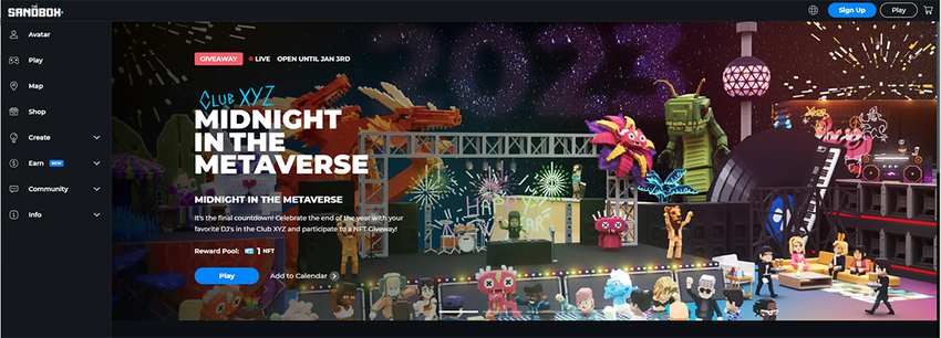 Big names like Adidas, Atari and Snoop Dogg have successfully set up shop in the Sandbox. The next big event is a New Years Eve DJ night in Club XYZ.