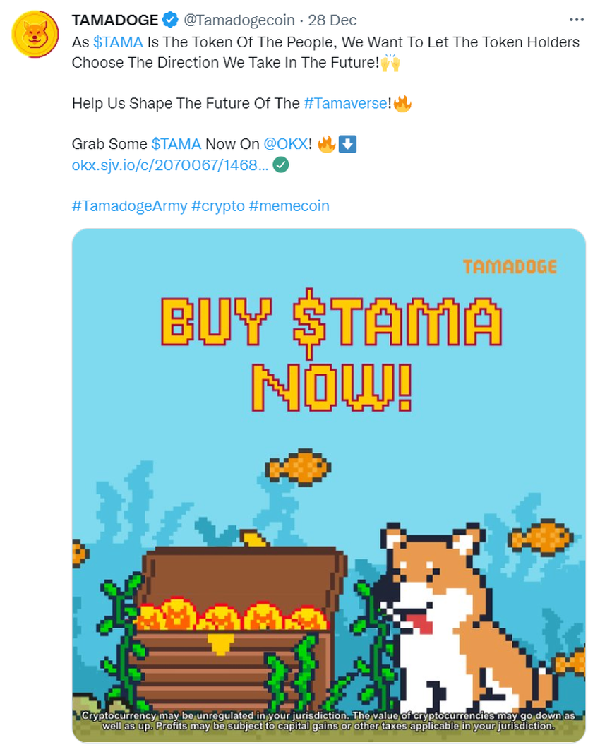 Investors took profits and the $TAMA price quickly dropped in line with the ongoing crypto bear market.