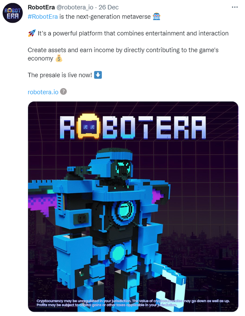 Metaverse crypto RobotEra is a new kid on the block in presale now. This metaverse project is supported by a stunning sandbox world and strong Play-2-Earn mechanics.