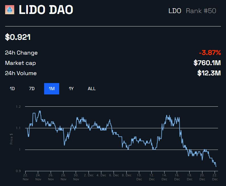 The Lido DAO token has not been performing well recently, but the same can be said for most DeFi tokens.