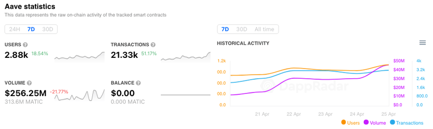 After launching on Ethereum (ETH) sidechain Polygon last week, usage of decentralized finance (DeFi) liquidity protocol Aave (AAVE) has been surging.