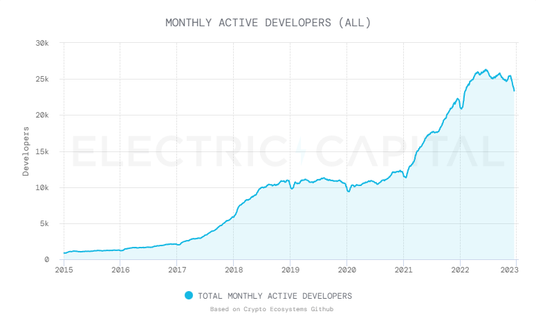The numbers are representative of a healthy crypto dev ecosystem despite a 70% market crash in 2022.