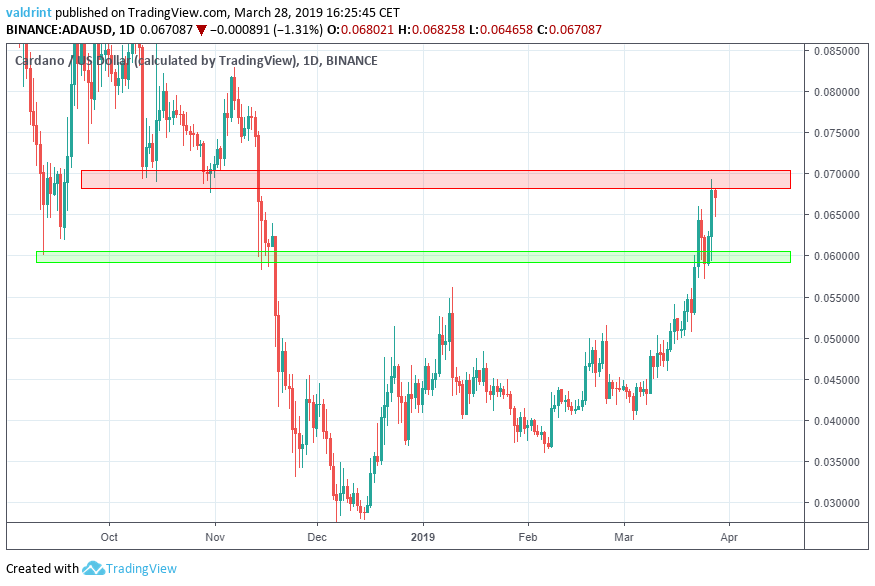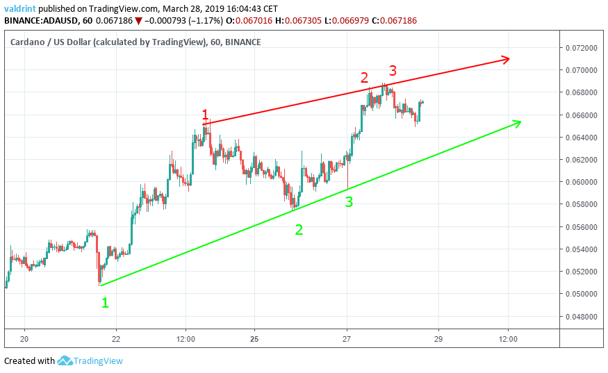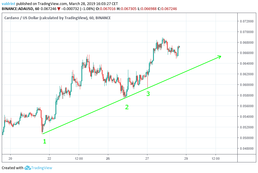 The price of Cardano has been rising since Mar 21 when it reached a low of $0.05. On Mar 27, the price reached a high of $0.0681.