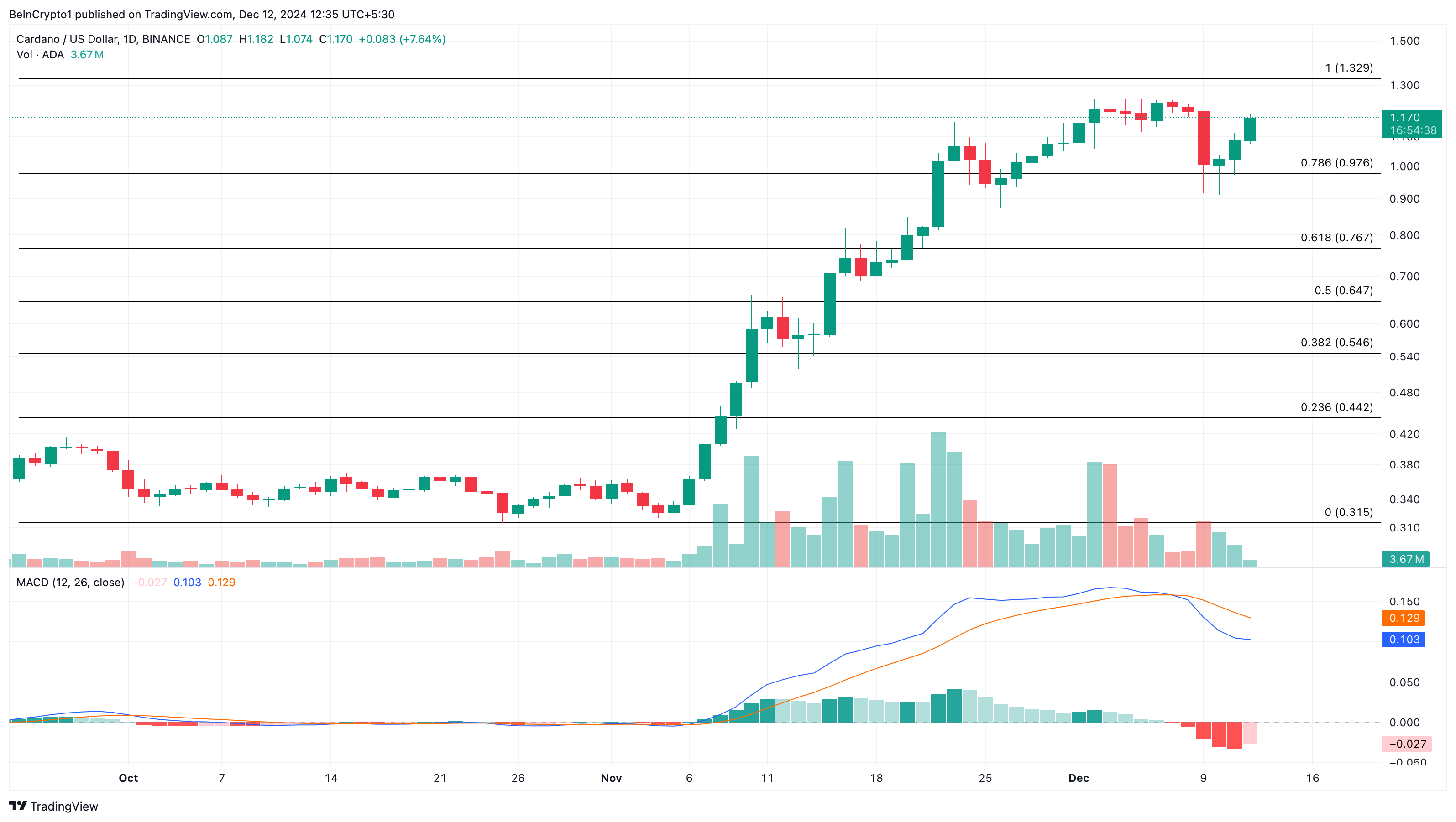 On Wednesday, December 11, Cardano’s (ADA) price dropped to $1.01 but has increased by approximately 15% over the last 24 hours. This increase has reignited hopes among the altcoin holders, suggesting that it could hold the uptrend firm.