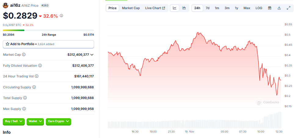 According to Coingecko, the price of AI16Z has dropped by over 30% since this news was announced. As of this writing, it is trading at $0.2829.
