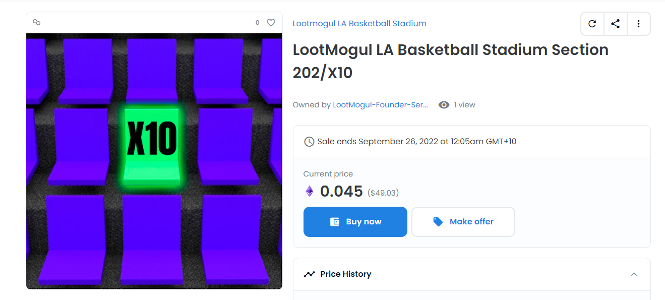 LootMogul is a sports metaverse gaming platform. The company say it is influencer-led. For sale are lands, parts of the stadium, plus arenas. Proof of ownership is via NFTs and tokens.