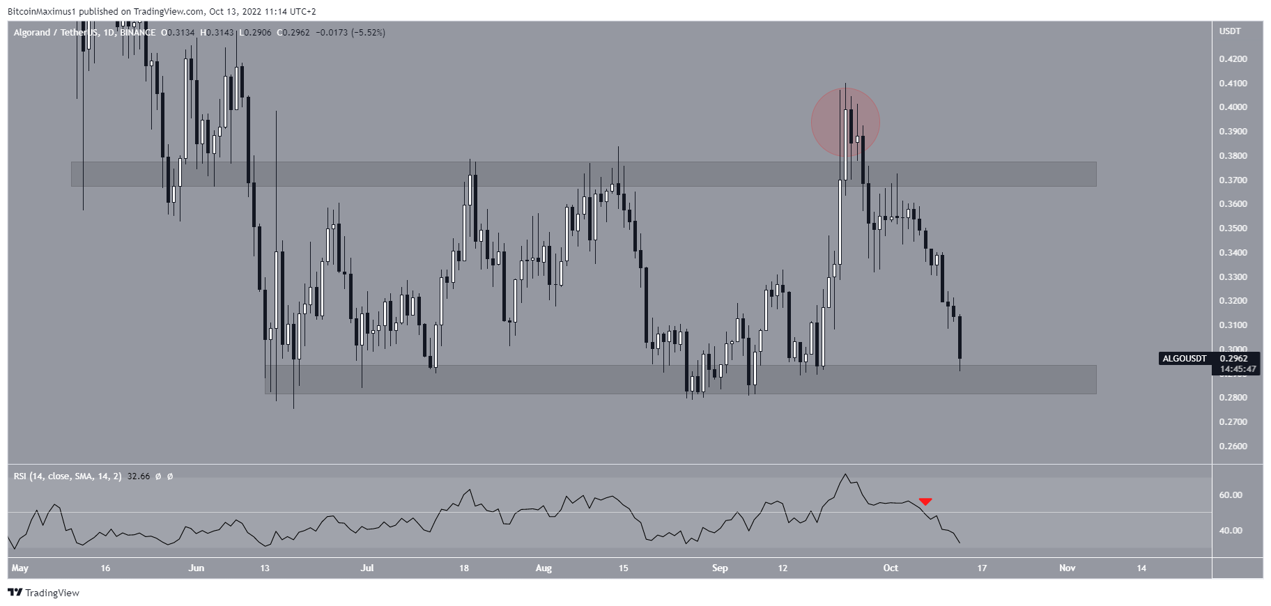 On Oct. 13, the ALGO price reached a low of $0.29, just above the bottom of the range.