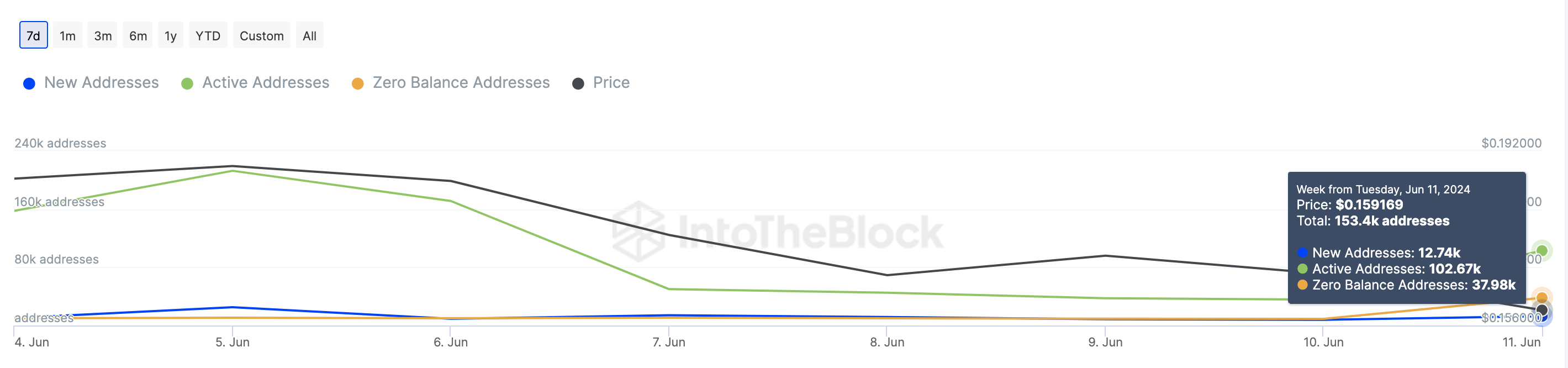 However, one may need to look for Algorand’s network activity. For instance, the number of zero-balance and active addresses on the network has been increasing since June 10. Precisely, active addresses were 102.670 on June 11. Zero-balance addresses were, however, 37,980 on the same day.