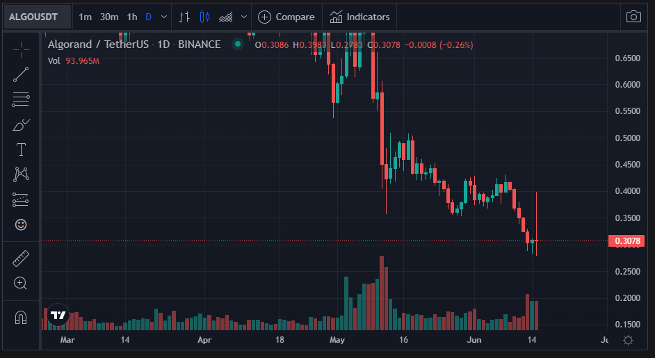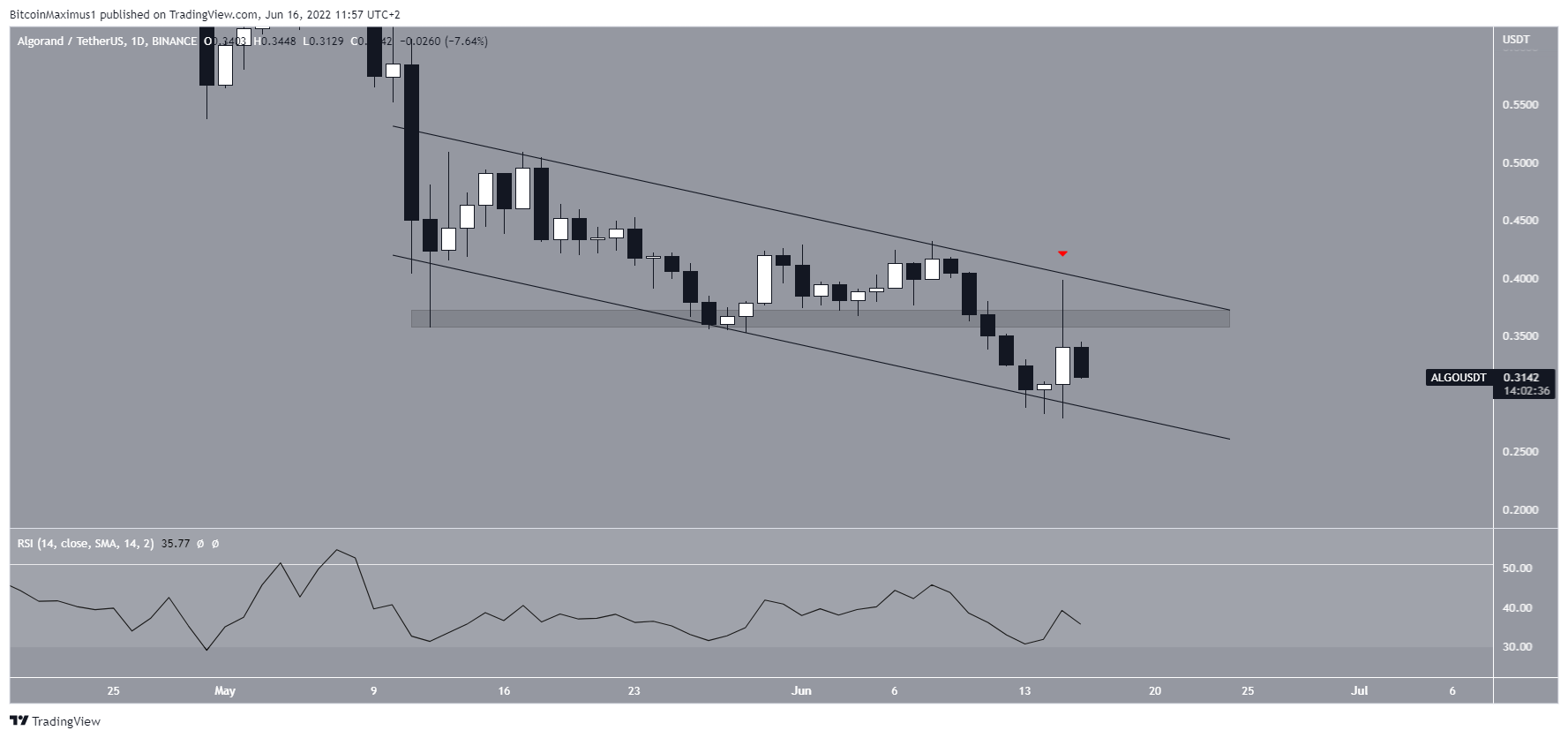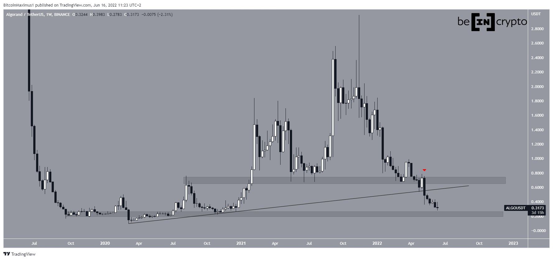 Algorand has been falling since reaching an all-time high price of $2.99 on Nov. 18, 2021. The downward move has so far led to a low of $0.27 on June 15, 2022. This amounted to a decrease of 89% measuring from the all-time high.Â