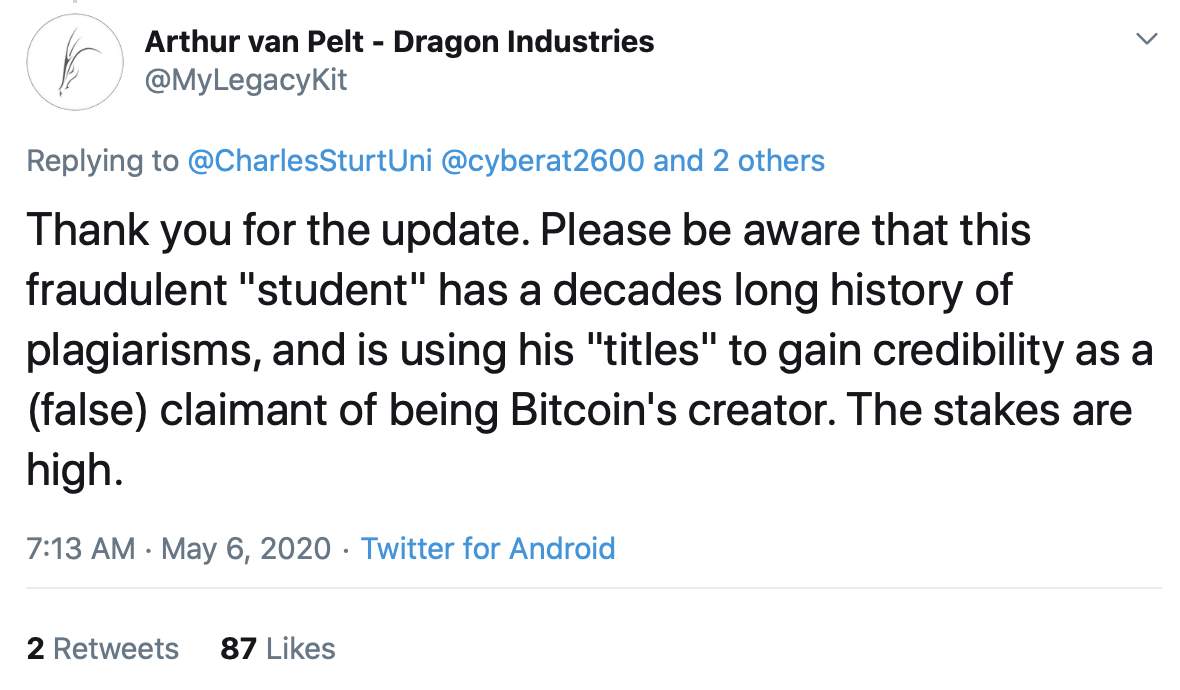 The replies applauded the university for investigating the matter thoroughly. Many also stressed that Wright has a history of fraud and using fake titles to gain credibility.