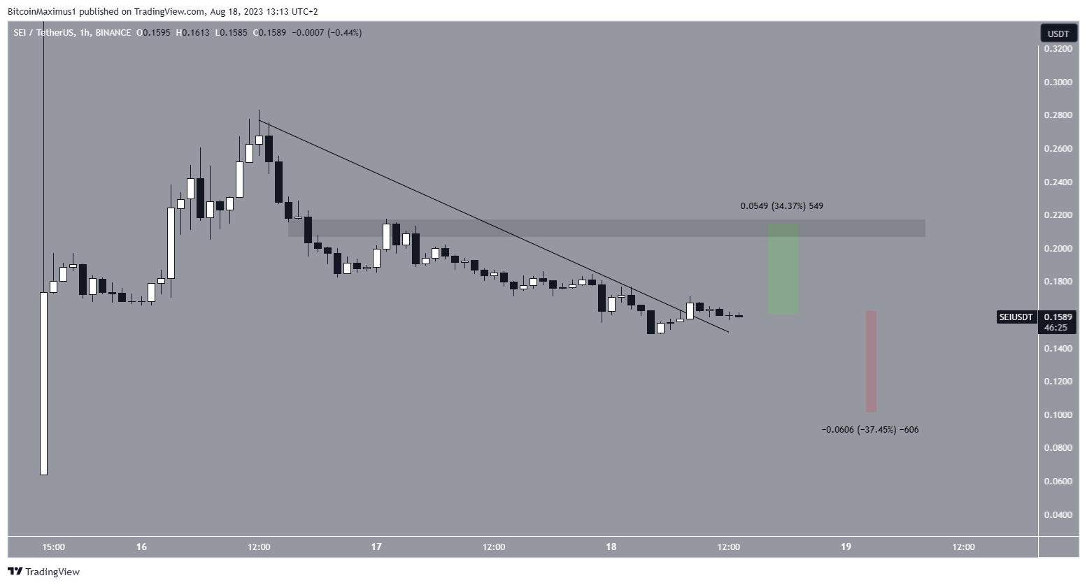 The SEI price increased massively on August 15. Following its launch on Binance, its price reached a new all-time high of $0.48 as soon as trading commenced. However, it has fallen since. The decrease has followed a descending resistance line since August 16.