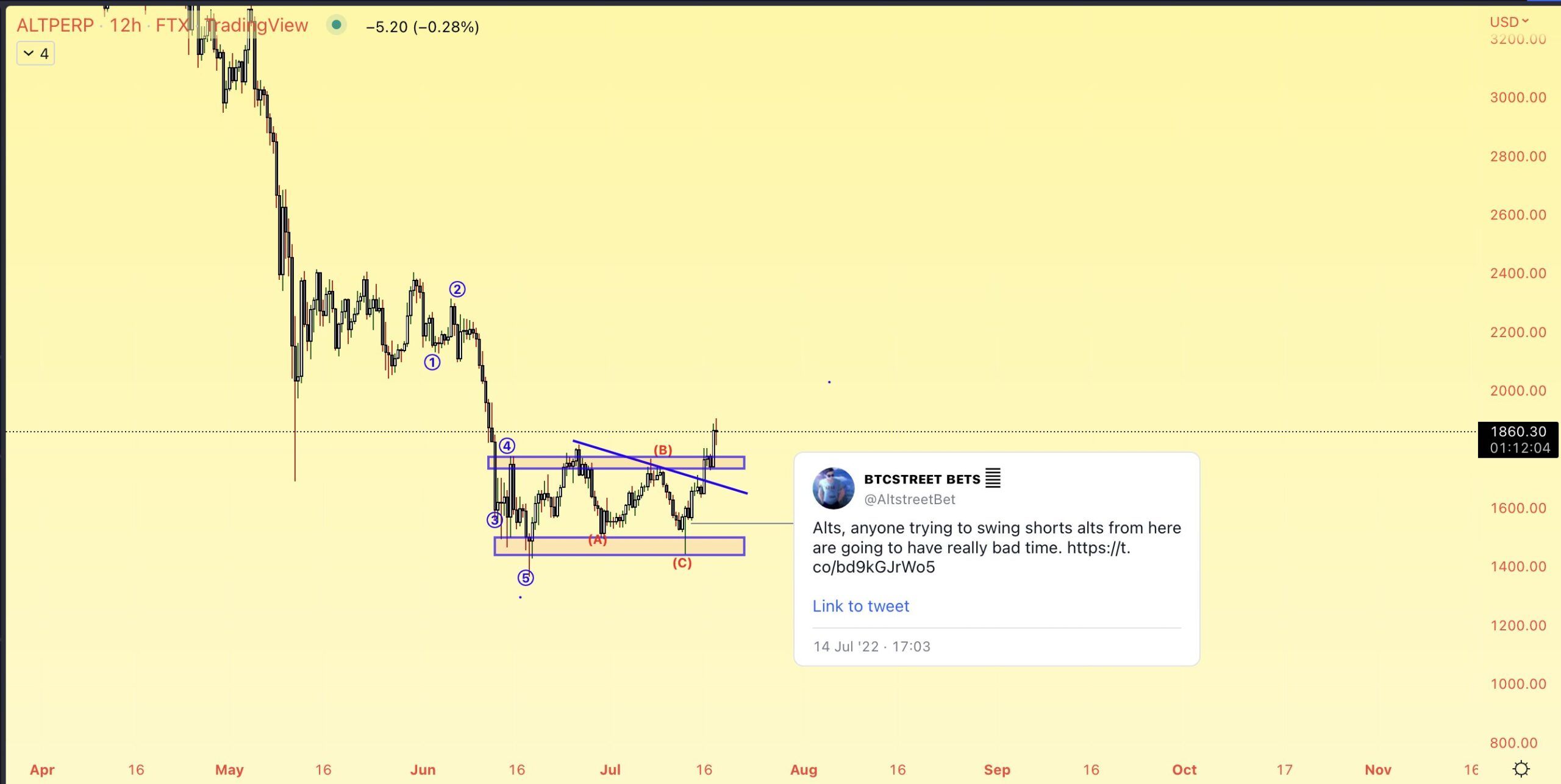 Technical analyst @Altstreetbet tweeted a chart of ALTCAP, stating that alts are expected to continue increasing.