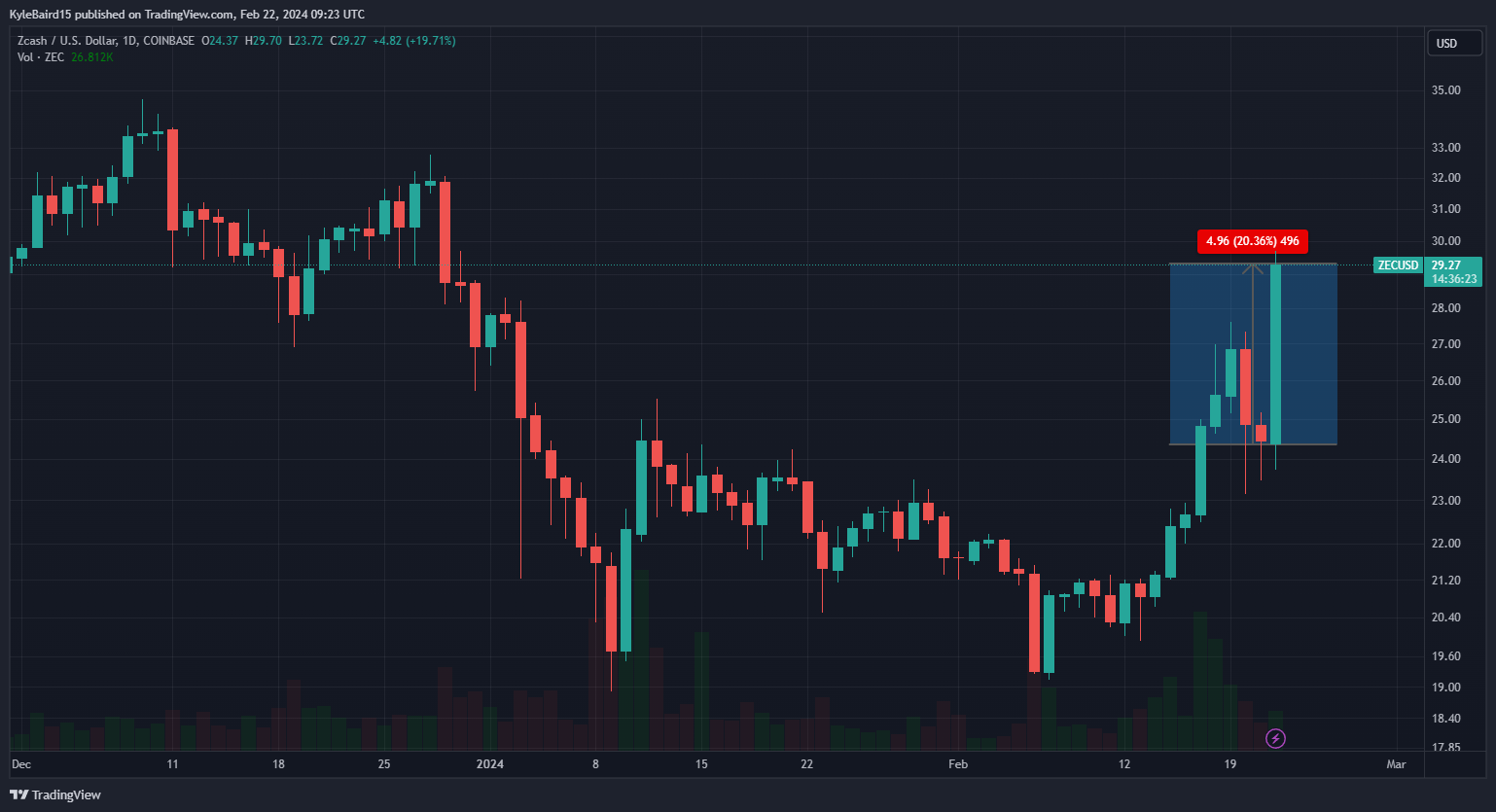 This initiative has catalyzed a notable rise in Zcash (ZEC), with a 20% uptick in the past day.