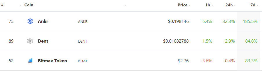 This week, BiC takes a look at the three best performing altcoins in the top 100. ANKR, DENT and BTMX managed to gain the most in price.