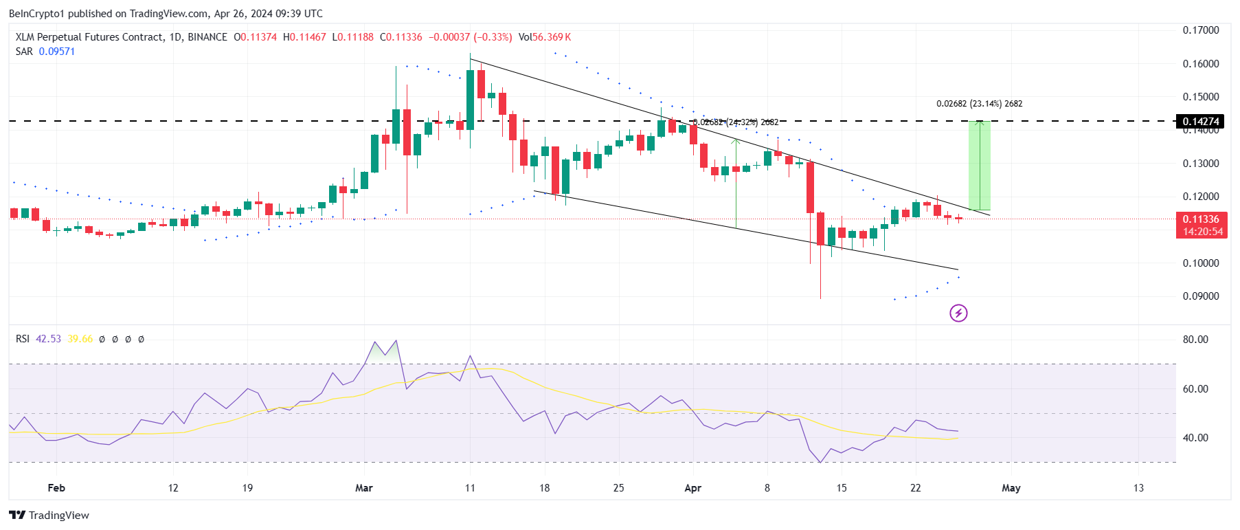 Per this pattern, a breakout could send XLM to $0.142, which would mark a 23% gain for the altcoin. This would enable XLM to chart a new all-time high by crossing $0.160.