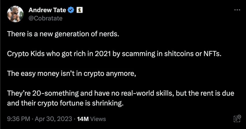 Tate’s latest post on X contradicts his posts made in April, when he criticized crypto influencers and said that “the easy money isn’t in crypto anymore.”