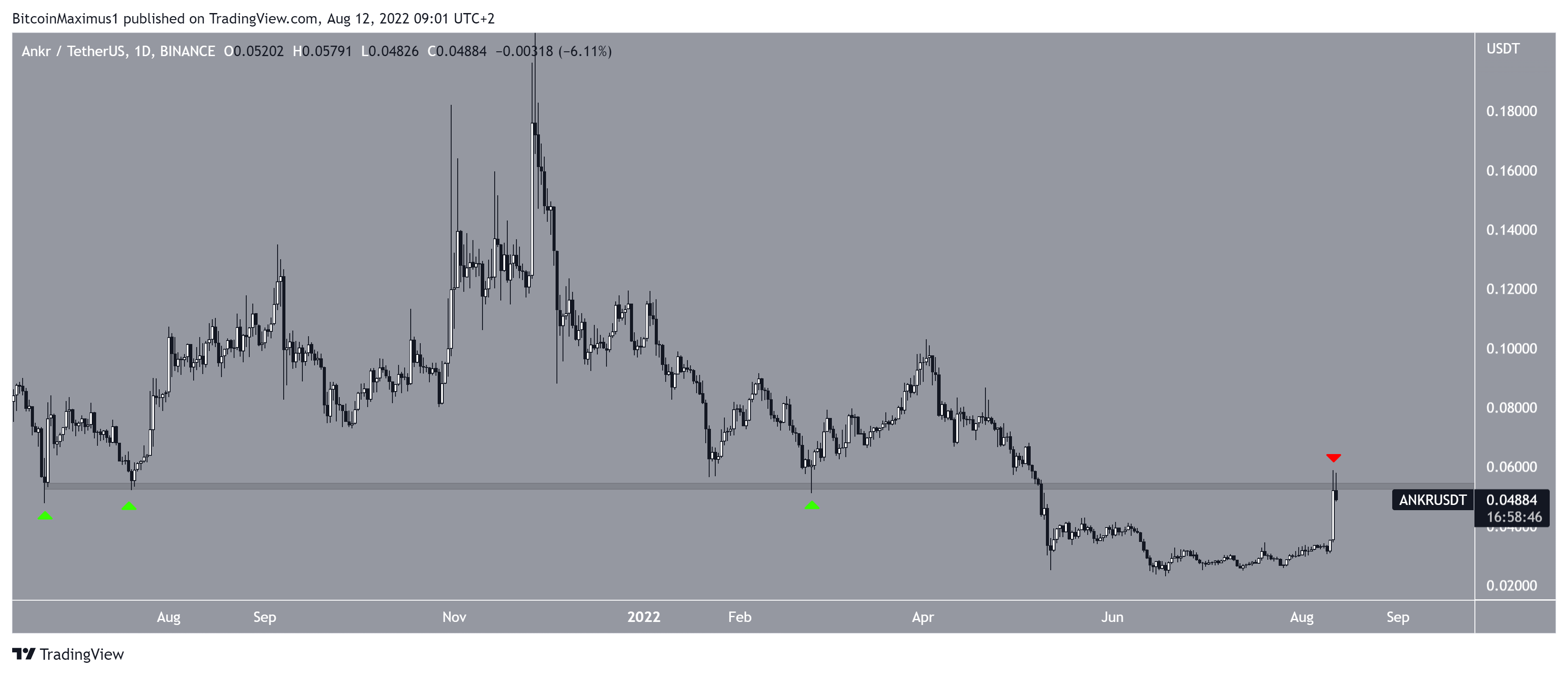 Sponsored SponsoredDespite this considerable increase, ANKR failed to reclaim the $0.0535 area, which is now acting as resistance (red icon). The area has previously provided support since June 2021 (green icons).
