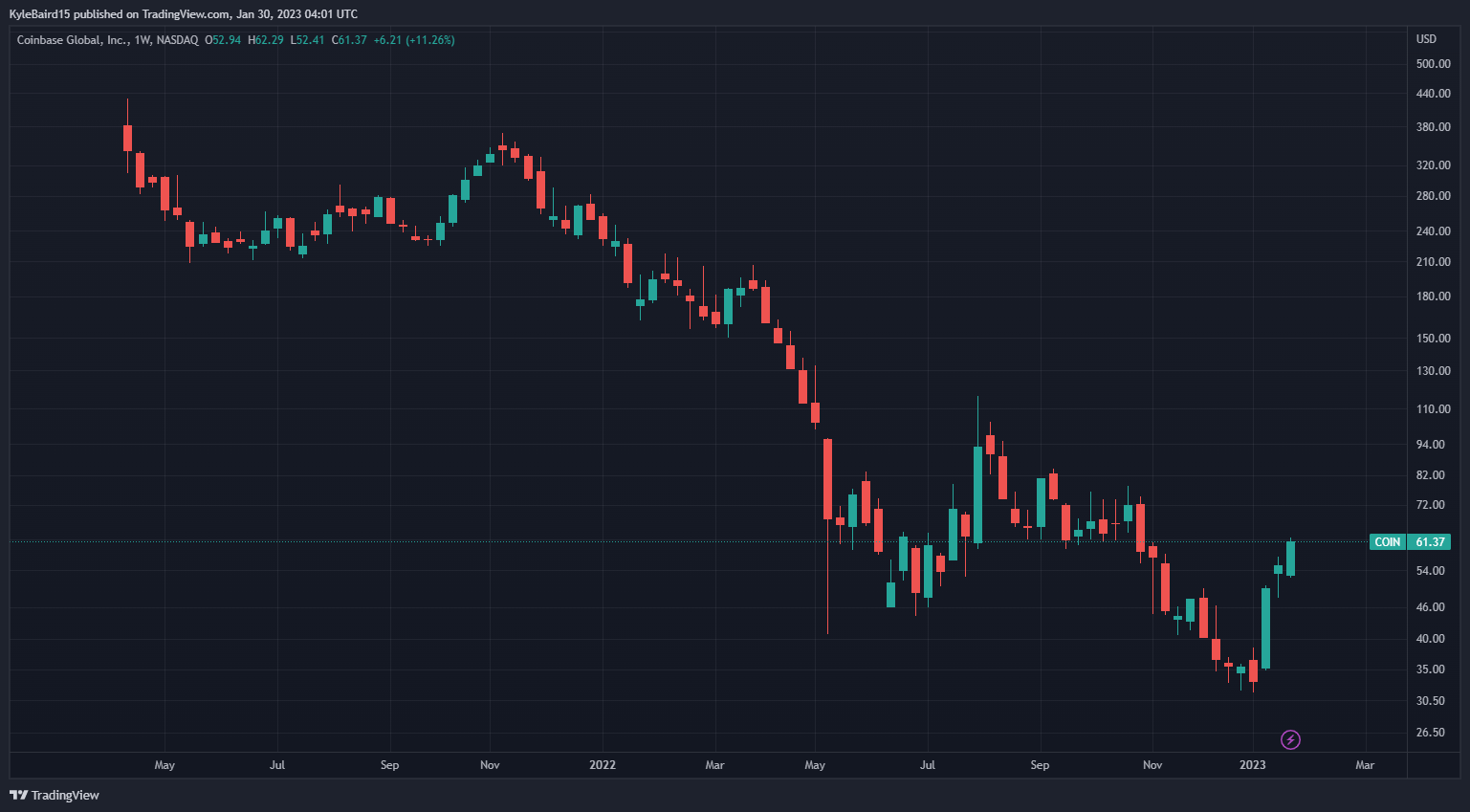 Several Bitcoin mining companies went public, and their stocks have been battered. Other big names, such as Coinbase, saw its stock (COIN) plummet to an all-time low. COIN prices slumped as low as $33 at the end of last year. This represents a fall of 90% from its all-time high, more than Bitcoin has declined during this bear market.
