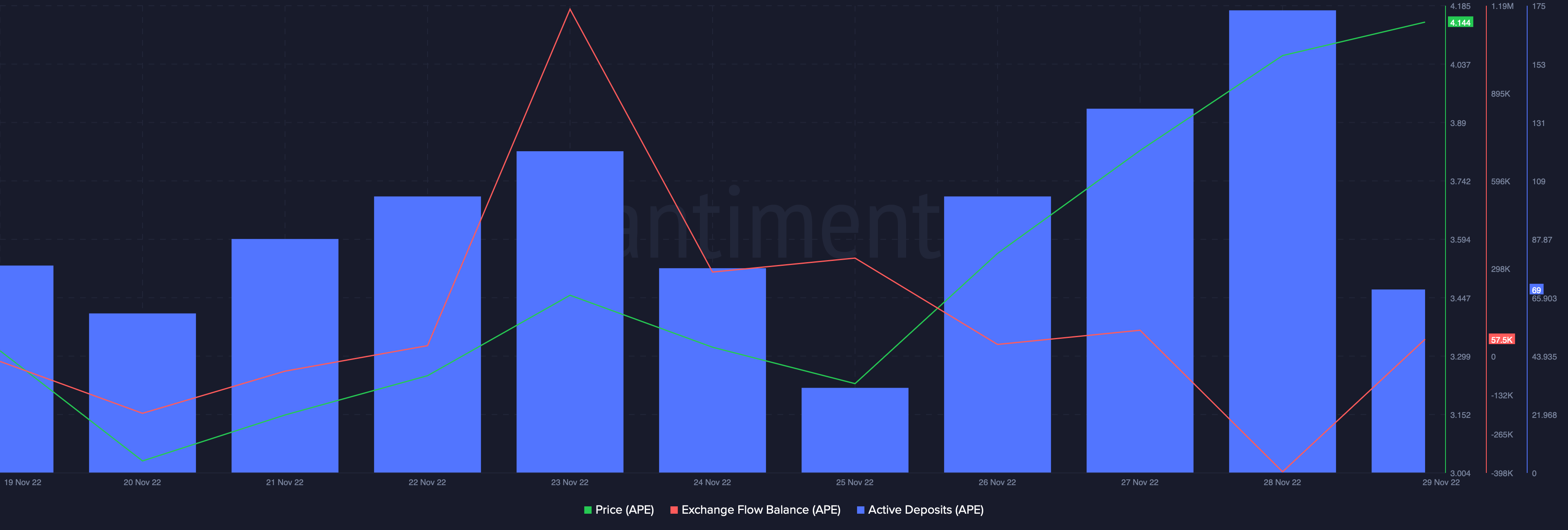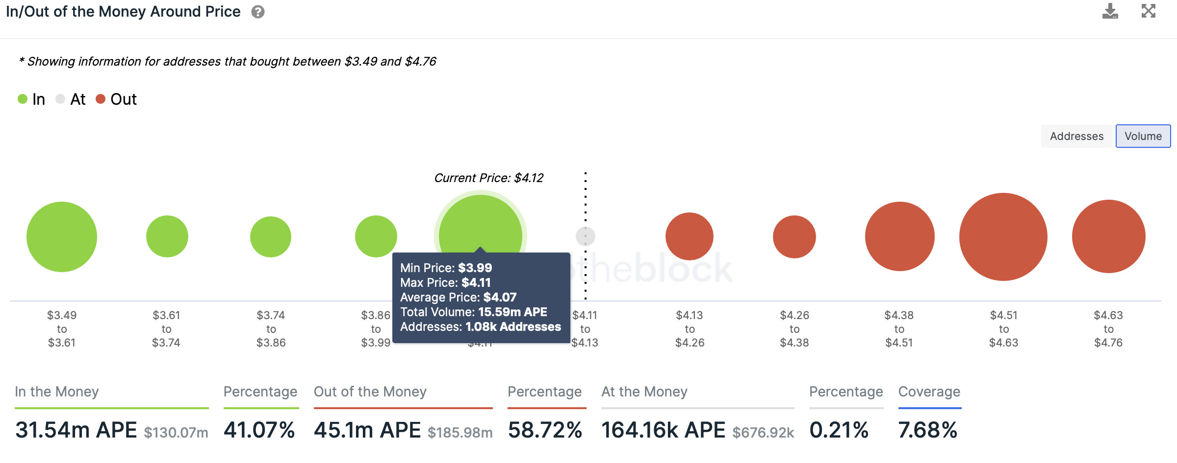 Looking at the In/Out of Money Around the Price indicator for APE, it was clear that while bears loom over price action, the $4.00 mark could offer relief to holders. The $4.07 mark, where 1,080 addresses hold 15.59 million APE tokens, can be a good support level.