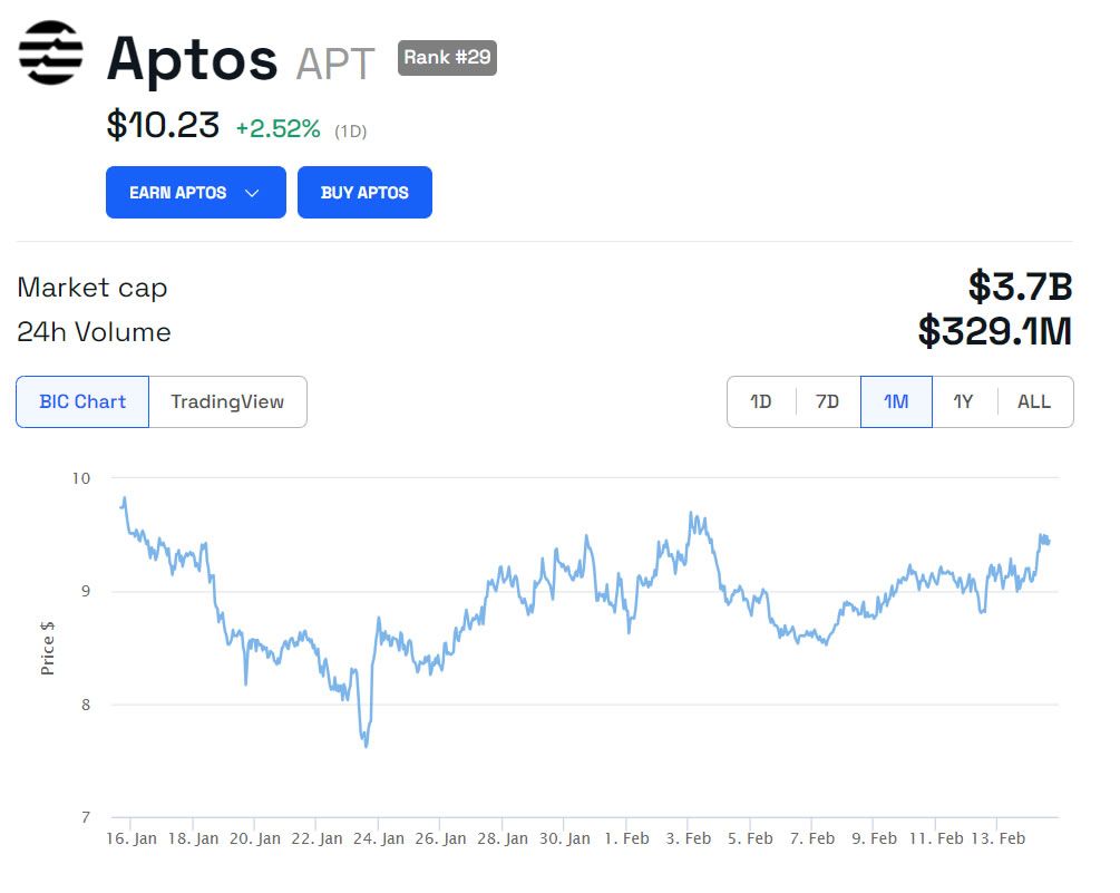 APT prices gained a marginal 2.4% on the day to reach $10.22 at the time of writing. The token has now notched up 15% over the past week as crypto markets rally.