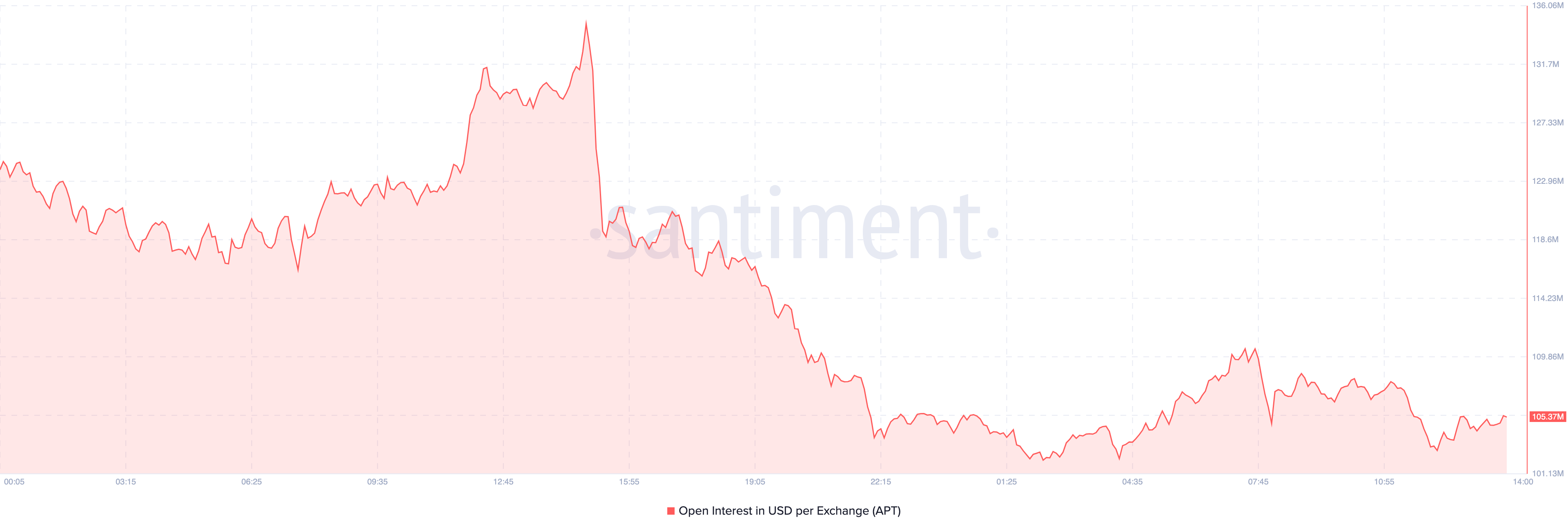 According to Santiment, APT’s OI attempted to approach $200 million on Wednesday, November 13. But it did not and has now dropped to $105.37 million. Open Interest refers to the total number of active contracts in the futures market that have not yet been settled.