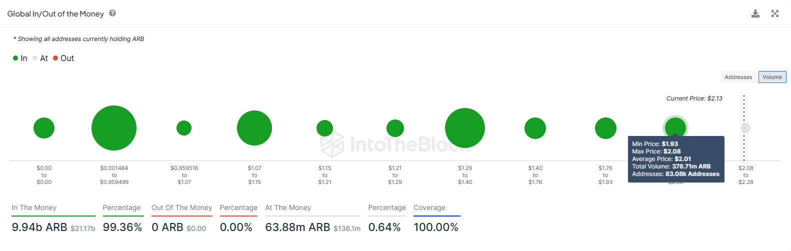 ARB holders are likely poised to hold off on selling until the aforementioned level is breached. This is because about 64 million ARB worth over $140 million is at the cusp of turning profitable.