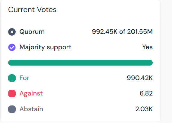 The Arbitrum DAO has now opened an on-chain final vote on the BoLD proposal. At the time of writing, the proposal had received unanimous support from the Arbitrum community, with 99.79% voting in favor of it.