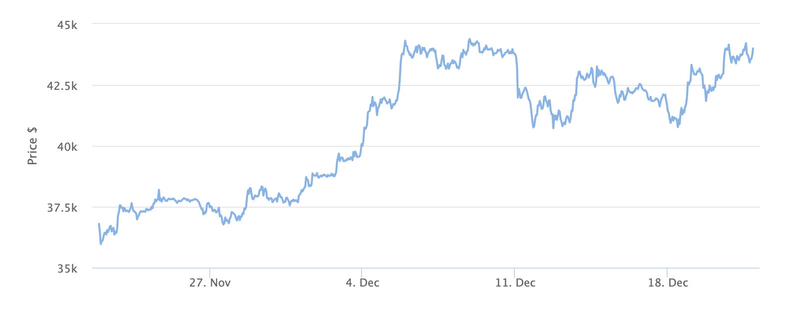 At the time of publication, Bitcoin’s price is $43,847.