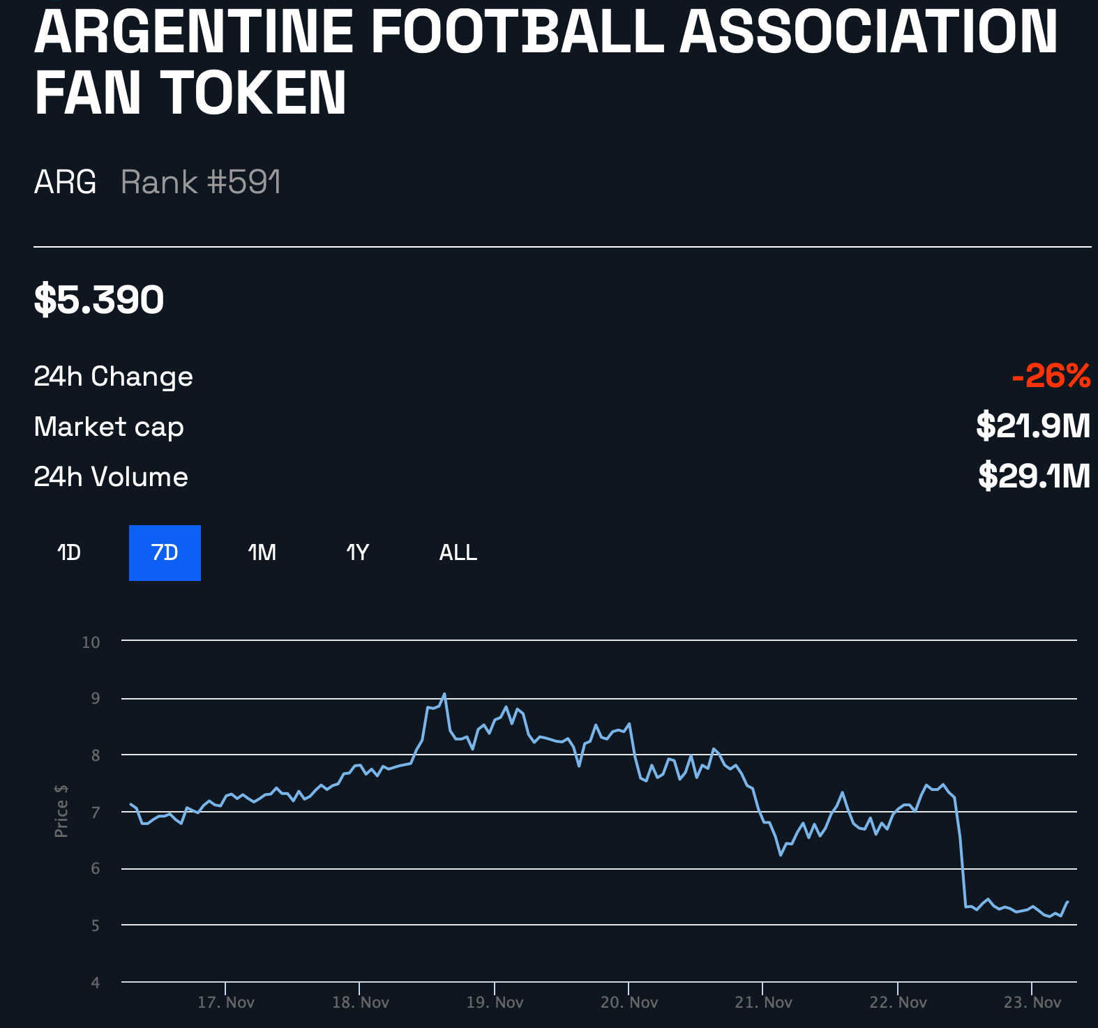 Consider this, before the kick-off, the flagship token stood at $7.50. But at the time of press, ARG traded around the $5.25 mark, highlighting that many fans sold off their tokens. These tokens were created by the Chiliz crypto firm and were launched on its Socios exchange in an official partnership with the Argentine Football Association.