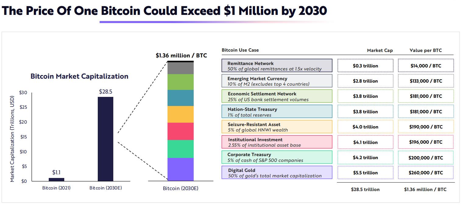 “According to our estimates, the price of one bitcoin could exceed $1 million by 2030.”