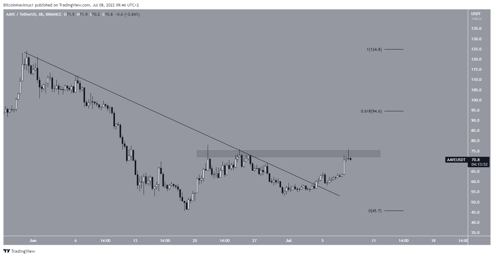 AAVE has been increasing since June 18. On July 5, it broke out from a descending resistance line that had previously been in place since the beginning of June.