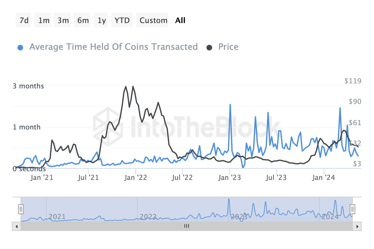 As the holding time decreases, it shows that more investors are trading AVAX rather than holding it. This increased activity can lead to higher volatility and price fluctuations.