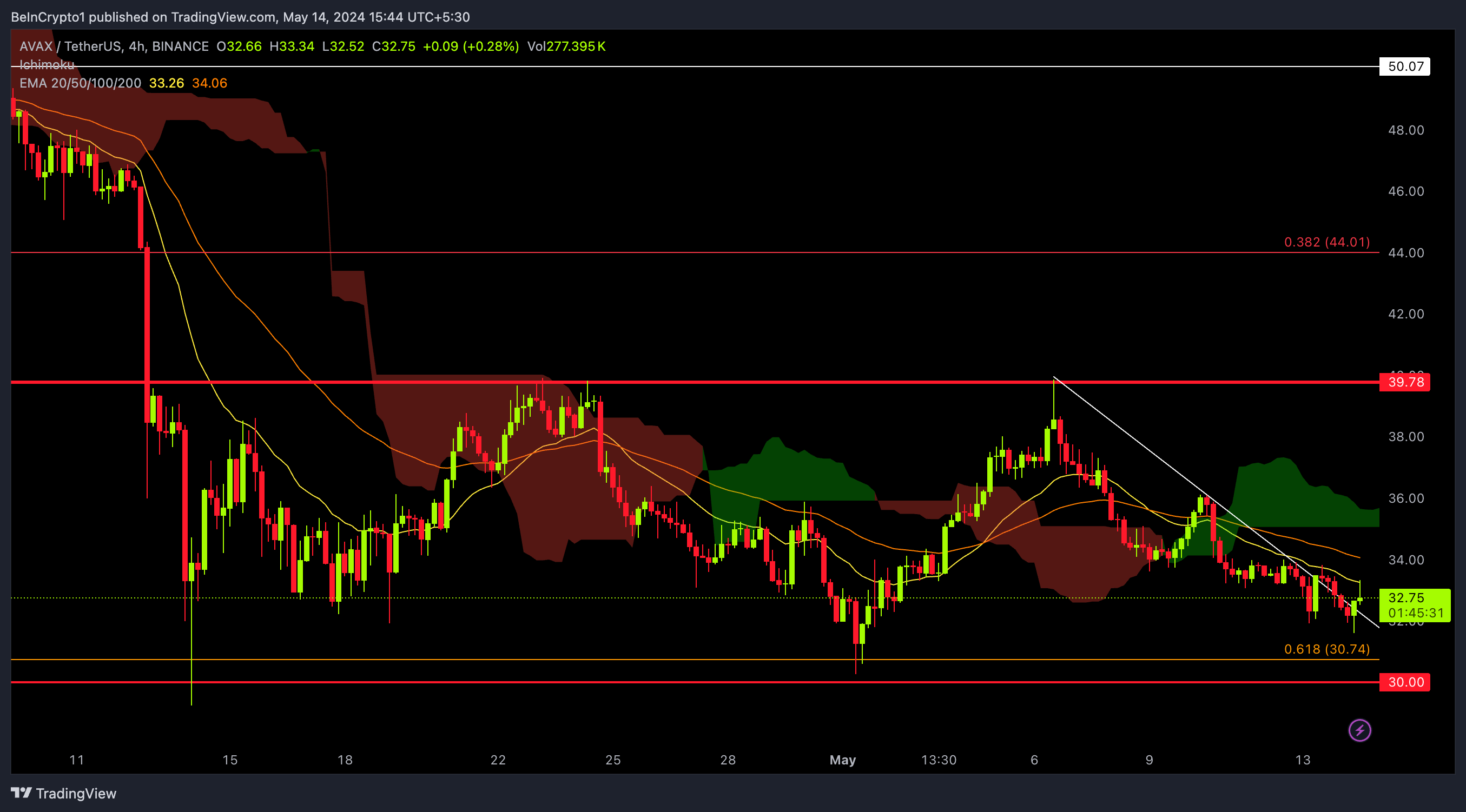 Additionally, the Ichimoku Cloud is currently in a critical resistance zone. If AVAX breaks above the cloud, it could signal a price recovery.