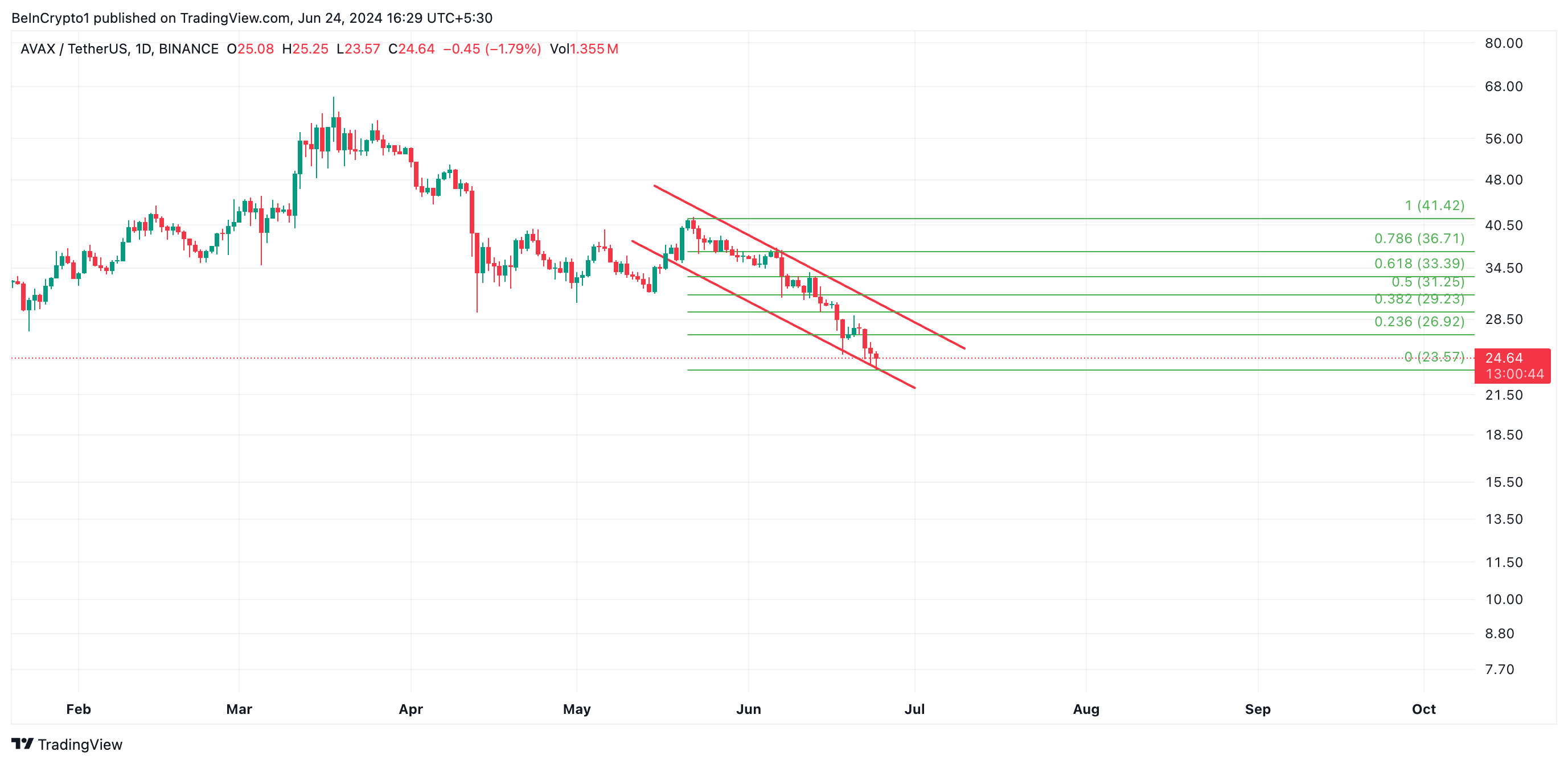 If AVAX maintains its downtrend, its value may dip to $23.57.