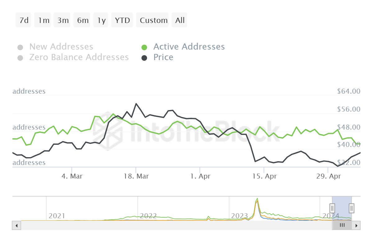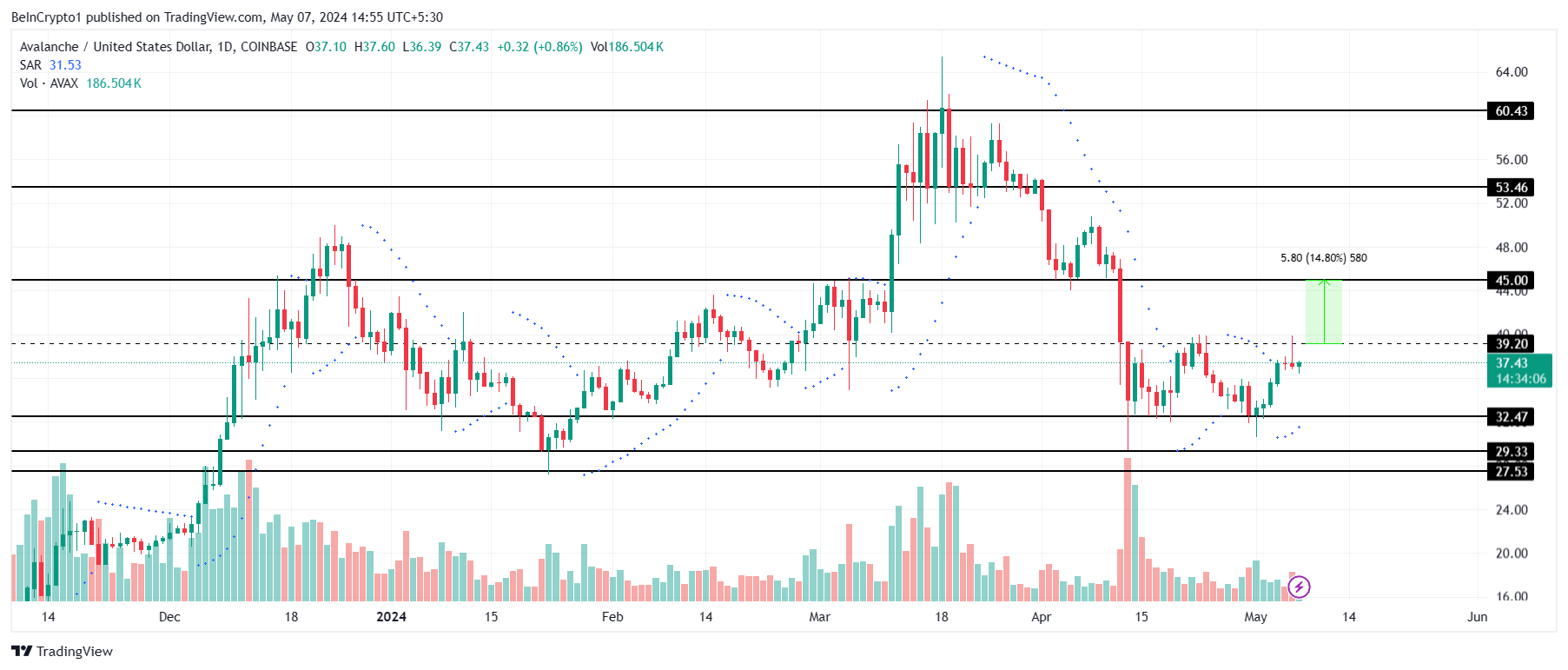 Avalanche’s price, trading at $37 at the time of writing, is struggling to close above $40. This has occurred multiple times in the past, and flipping it into support usually leads to AVAX reaching the crucial psychological support of $45.
