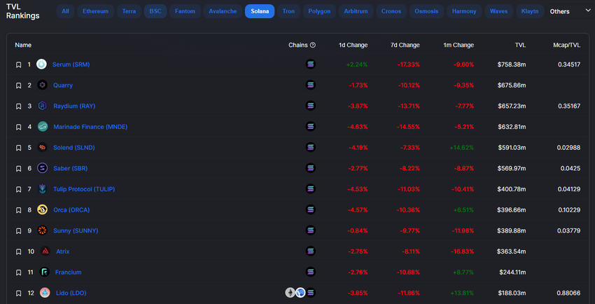 Solana falls behind Avalanche in TVL